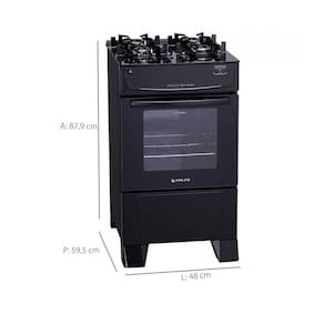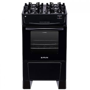 Características: Fogão Atlas 4 bocas Acendimento automático 4 queimadores ramal, sendo dois de 2,0kW e dois de 1,7kW Mesa de vidro Trempes: chapa de aço esmaltado Manípulos removíveis Vidro duplo na porta do forno Visor amplo na porta do forno Acabamento forno: limpa fácil Grades: 1 deslizante Capacidade do forno: 50 L Temperatura forno: 190° a 290°