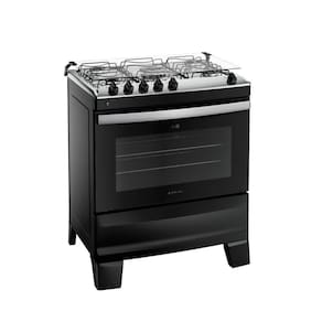 Com cinco queimadores e acendimento automático tanto na mesa quanto no forno, o uso é simples e eficiente. O forno com 86,5 litros de capacidade oferece espaço ideal para assar grandes receitas, contando ainda com luz interna, tecnologia limpa fácil e grades deslizantes, que facilitam o manuseio dos assados e a limpeza.