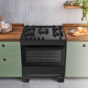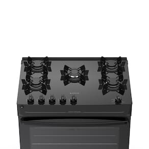 Material da mesa: Vidro temperado Tipo de acendimento: Automático Botões removíveis: Sim Forno: Limpa Fácil Número de prateleiras do forno: 1 Prateleiras removíveis: Sim Luz no forno: Não Porta do forno removível: Sim Trempes individuais: Sim Queimador tripla chama / mega chama: Sim Controle do painel: Mecânico Temperatura máxima do forno: 290?°C Classificação energética – Mesa: A Classificação energética – Forno: A Cor: Preto Potência dos queimadores: 2 rápidos – 2,0 kW 2 semirrápidos – 1,67 kW 1 mega chama – 3,0 kWTipo