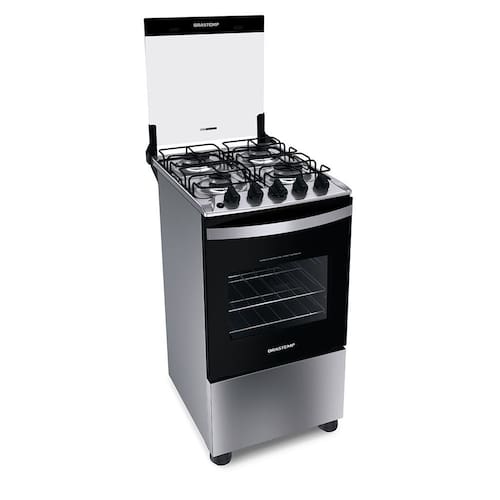 Fogão Brastemp Piso 4 Bocas Duas Prateleiras Ajustáveis Inox Bivolt BFO4NBR - Fogão Brastemp Piso 4 Bocas Inox Bivolt