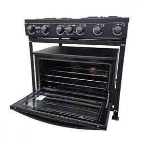 Com acabamento em preto, este fogão oferece uma estética imponente e profissional que se adapta a qualquer ambiente.