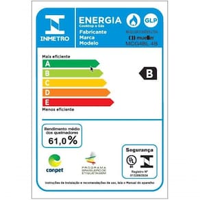 - Observações: Regulador de pressão para botijão conforme certificado pelo INMETRO (NBR 8473). Recomenda-se regulador de pressão de no mínimo 1kg/h para o correto funcionamento da performance do produto.; Para Gás Liquefeito de Petróleo (GLP), use mangueira de plástico certificada pelo INMETRO (NBR 8613) ou mangueira metálica (NBR 14177) ível de 1/2 com arruela vedadora para rosca interna da mangueira. Se a instalação for com Gás Natural (GN), utilize somente mangueira metálica (NBR 13419).;