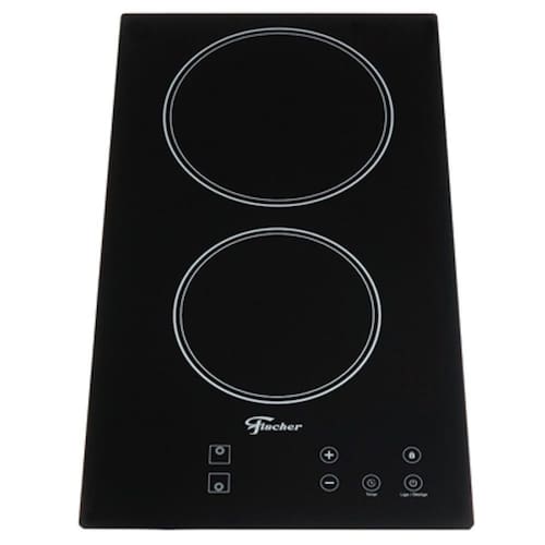 Cooktop Fischer elétrico com mesa vitrocerâmica, 2 bocas, acendimento superautomático, controle touch screen, 9 níveis de potência, timer de até 99 minutos e trava de segurança.Luz de calor residual