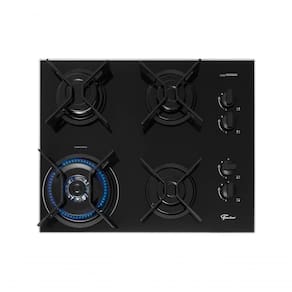 Fogão Cooktop Fischer 4 bocas com tripla chama, acendimento superautomático, mesa de vidro temperado e trempes em ferro esmaltado. Bivolt.Luz de calor residual
