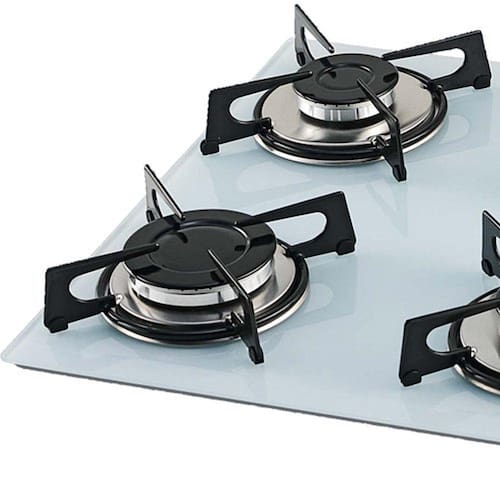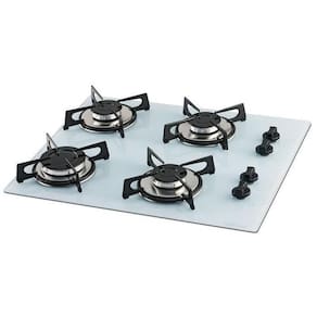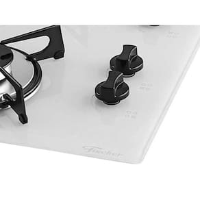 Cooktop Fischer a gás com mesa de vidro temperado branco polar, 4 queimadores (1 rápido de 3000W e 3Alimentação