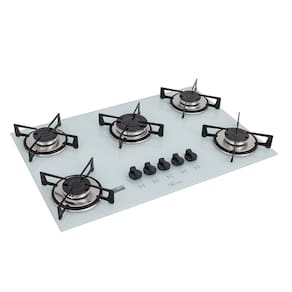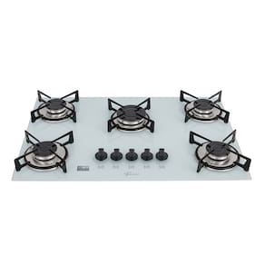 Cooktop a Gás Fischer 5 Bocas Mesa de Vidro Bivolt com acendimento superautomático e mesa em vidro temperado.Luz de calor residual