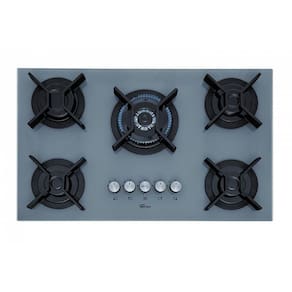 Cooktop Fischer Infinity com mesa de vidro, 5 queimadores (1 tripla chama), trempes individuais em ferro fundido esmaltado, acendimento superautomático e suportes EasyClean.Alimentação