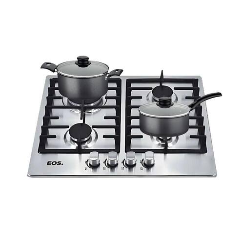 1 - Fogão Cooktop Inox a Gás 4 Bocas 1 Dupla Ecg04 Bivolt - Eos