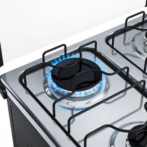 Queimadores: 1 Chama (2,5kW), 1 Família (2,0kW), 2 Semi-Rápidos (1,7kW)