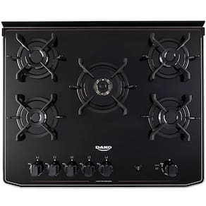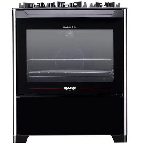 Caracteristicas: Marca: Dako Modelo: 300000728 Tipo: Fogao de piso Quantidade de bocas: 5 bocas Acendimento: Automatico Material da mesa: Vidro temperado Funcionamento: GLP - A conversao para GN precisa ser adaptada, conforme consta no manual do produto Tipo de queimadores: Tripla chama, rapido e semi-rapido Material das trempes: Ferro Fundido Manipulos removiveis: Sim Tampa de vidro: Nao Capacidade do forno: 100 litros Prateleiras do forno: 01 grade deslizante e 01 auto deslizante Luz no forno: Sim Forno autolimpante: Nao Acabamento do forno: Limpa Facil Timer: Nao Grill: Nao Relogio: Nao Termostato: Nao Bandeja coletora de residuos: Nao Forno duplo: Nao Sistema corta gas: Sim Pes: Sim Eficiencia energetica: A Potencia dos queimadores: Tripla chama: 3,3 kW | Rapido: 2,0 kW | Semi-rapido: 1,7 kW