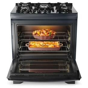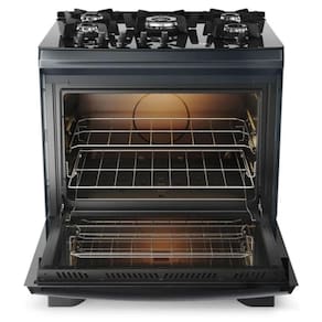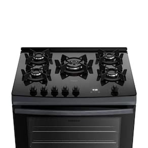 Queimadores: 1 Tripla Chama (3,3kW), 2 Família (2,0kW), 2 Semi-Rápidos (1,7kW)