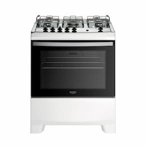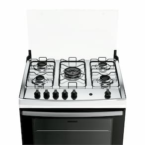 Tipo: Fogão de Piso Alimentação: Gás Tensão: Bivolt Mesa: Mesa de Inox, com trempe arame, acendimento automático e tampa da mesa de vidro. Manípulos: Top Control, tipo redondo e removível. Queimadores: Quantidade 5 queimadores, tipo alumínio jateado e escovado com capa esmaltada, com queimadores com potência 10,7 kW (1,7kw, 2,0kW e 3,3kW). Forno: Capacidade 100 litros, Alimentação a Gás, Potência do forno 2,65kW, acabamento interno do forno em esmalte limpa fácil, com prateleira deslizante, luz no forno, vidro porta do forno duplo temperado, puxador em alumínio, forno com visor total e válvula de segurança.INMETRO: Queimadores da mesa e forno classificação “A” de mais eficiente Diferencia Atributos e Benefícios:Dimensões do produto