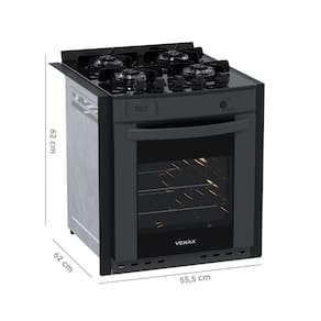 Fogão de Embutir 4 Bocas Gaudi Prisma Vitreo BL Grafite Gás GLP Com Forno GDPMV450 - Venax 18616