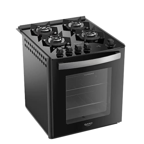 SimO Fogão de Embutir 4 Bocas Preto Dako Supreme é uma escolha elegante e funcional para sua cozinha. Possui um forno espaçoso com recursos como prateleira autodeslizante, lâmpada interna e porta com ampla visão. Suas grades de ferro fundido garantem estabilidade para panelas, enquanto a Chama oferece alta potência. A mesa de vidro temperado e o puxador em alumínio escovado adicionam um toque moderno. Com acendimento automático e recursos de limpeza fácil, é uma afirmação de bom gosto em termos de fogões de embutir.