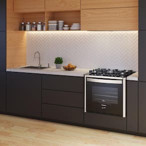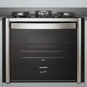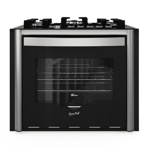 O Fogão de Embutir Fischer Gran Cheff 5 Bocas é uma opção com mesa de vidro temperado na cor preta e trempes em ferro fundido esmaltado, proporcionando durabilidade e estabilidade. Possui 5 queimadores de diferentes potências, incluindo tripla chama de 3750W. O forno de 110L possui grill elétrico e porta com vidro duplo, contribuindo para a manutenção do calor interno e melhor desempenho térmico.