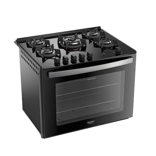 O Fogão de Embutir 5 Bocas Preto Dako Supreme é uma escolha sofisticada e prática para a sua cozinha. Com um amplo forno de 100L, prateleira autodeslizante, lâmpada interna e porta transparente, oferece conveniência ao cozinhar. Suas grades de ferro fundido proporcionam estabilidade, e a Tripla Chama garante alta potência. O design moderno inclui mesa de vidro temperado e puxador em alumínio escovado. Possui acendimento automático e é fácil de limpar devido ao revestimento Limpa Fácil, botões removíveis e vidro resistente. Com 5 queimadores, é uma afirmação de bom gosto para sua cozinha.
