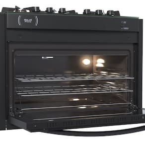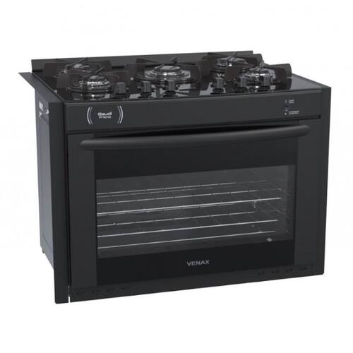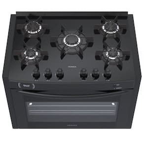 Características técnicas: Acendimento: Automático Queimadores: 3 Grandes e 2 Médios Trempe dos Queimadores: Individual Esmaltada Mesa Queimadores: Vidro Preto Base das Trempes: Esmaltada na cor Preto Botões: Removíveis Válvula de Segurança: Sim Luz no Forno: Sim -Lâmpada não acompanha o produto- Prateleiras do Forno: Duas Auto Deslizantes Revestimento do Forno: Esmalte Easy Clean Temperatura: 5 posições de 180°C Até 290°C Função Grill: Não Timer Grill: Não Timer Gás: Não Espeto Giratório: Não Bandeja Coletora de Resíduos: Não Porta Removível: Sim Porta do forno: Vidro Panorâmico com Base Lateral Vidro Duplo na Porta: Sim Puxador da Porta: Aço na Cor do Produto Entrada de Gás: Uma Entrada-Lado Esquerdo Visto de Frente- Alimentação: Gás GLP -A conversão para Gás Natural não é coberta pela garantia- Frequência: 50/60Hz Classificação Energética: A Etiquetas: ENCE e CONPET Potência do Queimador do Forno: 3,30kW Potência Queimadores Mesa: 1,80kW -Queim.Grande-; 1,35kW -Queim.Médio- Dimensões Internas do Forno-LxPxA-: 648x470x290 -mm- Volume do Forno: 88,3L