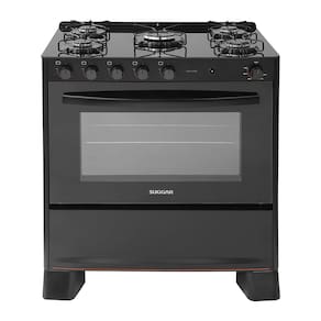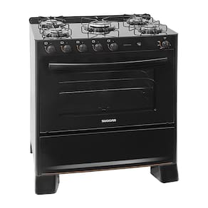 DADOS TÉCNICOS: - Voltagem: Bivolt - Cor: Preto - Quantidade de bocas: 5 Bocas - Acendimento: Automático - Tipo de mesa: Vidro temperado - Instalação: Fogão de piso - Capacidade do forno: 90L - Tampa: Não - Grades do forno: Grade fixa com 3 níveis de ajuste no forno - Botões Removíveis: Sim - Tipo de gás: GLP - Trempes: Aço esmaltado brilhante com 6 pontos de apoio - Medidas do fogão (AxLxP): 92x75,5x64,3cm - Peso: 30 Kg - Garantia: 12 meses