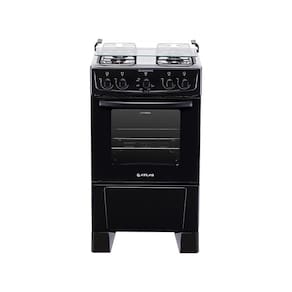 O fogão conta com puxador tubular metálico, que permite mais estabilidade para a abertura da porta do forno, painel moderno que permite controlar melhor a temperatura das bocas e do forno, pés altos e robustos, trempes duplas em aço esmaltado e acendimento manual.