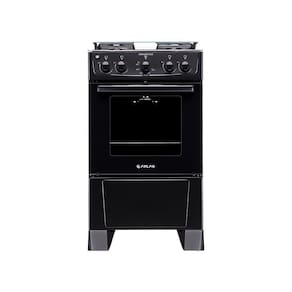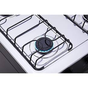 Possui mesa em inox, tampa de vidro na mesa, grades duplas de aço esmaltado, acendimento automático e botões removíveis, facilitando na hora da limpeza.