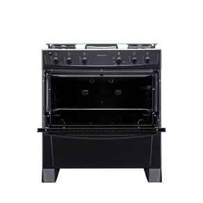 Possui mesa em inox, tampa de vidro na mesa, grades duplas de aço esmaltado, acendimento automático e botões removíveis, facilitando na hora da limpeza.
