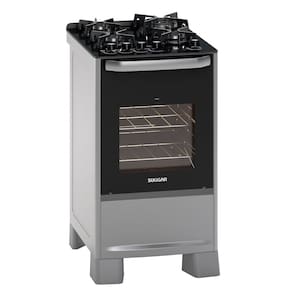 Design super modernoBotões top controlMesa de vidro temperado: qualidade e alta resistênciaTrempes individuais de ferro fundido com 6 pontos de apoio: mais modernas, robustas e duráveisQueimador tripla chamaAcendimento superautomático na mesa e no fornoQueimadores injetadosCapacidade do forno: 56LForno Fácil Limpeza: a gordura não gruda e fica mais fácil de limparForno com válvula de segurançaGrill no fornoDobradiças italianas: amortecem o fechamento da portaProteção térmica com vidro duplo no fornoControle de temperatura do forno: 180°C a 280°C1 grade fixa e 1 grade deslizante com 3 níveis de ajuste no fornoPuxador pintado na cor prataPés elevados que facilitam a limpeza do pisoLuz no forno (a lâmpada não acompanha o produto) ESPECIFICAÇÕESNOME DO PRODUTOFogão Best Grill 4 queimadoresCORPrataQUANTIDADE DE PEÇASCAIXA INDIVIDUAL1CAIXA MASTER-CÓDIGO 127VSKUFGV407PRIX1EAN CAIXA790.831.281.349-9CÓDIGO 220VSKUFGV407PRIX2EAN CAIXA790.831.281.350-5DIMENSÕES(Larg.xAlt.xProf. cm)PRODUTO SEM CAIXA49,5x92,0x66,3PRODUTO COM CAIXA50,5x93,0x65,3PESOS (kg)PRODUTO SEM CAIXA21,3PRODUTO COM CAIXA24,0
