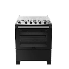 Mesa inox brilhante o e manípulos removíveis para facilitar a limpeza do dia a dia. Revestimento interno do forno limpa-fácil. Duas prateleiras (1 fixa 1 deslizante) e luz do forno blindada. Robusto queimador tripla chama para agilizar o preparo de suas receitas.