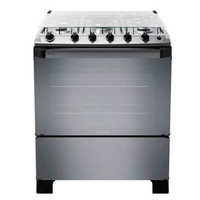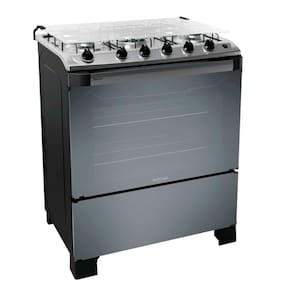 Características técnicas: Cor frontal: Prata Cor lateral: Preto Plataforma -mm-: 760 Frequência da rede -Hz-: 60 Potência elétrica nominal máxima-W- : 25 Piso/embutir: Piso Quantidade de queimadores: 5 - 2 pequenos,1 grande, 1 médio e 1 tripla chamas- Potência total da mesa -kw-: 11,3 Controle integrado na mesa: Sim Indicadores de temperaturas estampados na mesa: Sim Queimador grande - Especial: Tripla chamas Acabamento capa queimador: Esmaltado Brilhante Acabamento câmara queimador: Forjado polido c/ saia Sistema: Base c/Suporte p/ Eletrodo Material da mesa: Aço Inox 430 e Aço Inox 439 Acabamento: Polido / Escovado Manípulos de queimadores das mesa: Injetado Trempes: Integrada Material da trempe: Arame Redondo Classificação energética: A Acendimento: Automático Geometria do tampão de vidro: Liso plano Grafismo no tampão: Sim Nº de Cavidades no forno: 1 Manípulo do queimador forno: Injetado, grafismo indicador de temperatura do forno Material do Puxador: Alumínio Potência -kW-: 2,4 Escalonamento -°C-: 180/200/220/250/270 Timer: Não Classificação energética: A Acendimento: Automático Prateleira:2 Fixas Luz no forno: Sim Lâmpada inclusa: Sim 220V Acabamento lateral do forno: Limpa Fácil Revestimento do forno: Fundente a pó Volume -litro-: 101 Consumo de manutenção do forno -kg/h-: 0,159 Vazão total -L/min-: 10,58 Potência total mesa+forno - GLP -kW-: 13,7 Potência total mesa+forno - GN -kW-: 13,7 Acabamento externo da porta -vidro + coluna-: Vidro Acabamento interno da porta -vidro + coluna-: Vidro + aço Acabamento externo laterais: Chapa pintada - Branco / Preto Fosco Material dos pés: Polipropileno