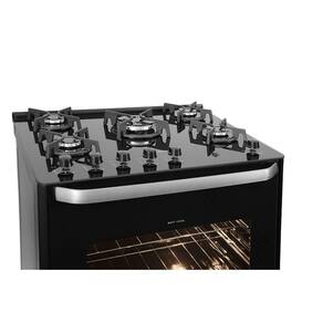 - Design super moderno - Botões top control - Mesa de vidro temperado: qualidade e alta resistência - Trempes individuais de ferro fundido: mais modernas, robustas e duráveis - Queimador tripla chama central - Acendimento automático na mesa e no forno - Queimadores injetados - Capacidade do forno: 90L - Forno Fácil Limpeza: a gordura não gruda e fica mais fácil de limpar - Forno com válvula de segurança - Dobradiças italianas: amortecem o fechamento da porta - Proteção térmica com vidro duplo no forno - Controle de temperatura do forno: 180°C a 280°C - 1 grade fixa e 1 grade deslizante com 3 níveis de ajuste no forno - Puxador em alumínio escovado - Pés elevados que facilitam a limpeza do piso - Luz no forno (a lâmpada não acompanha o produto) - Bivolt