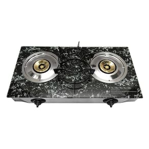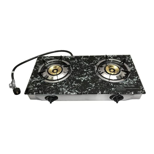 - Topo de vidro temperado com padrão de mármore; ignição automática; fácil de limpar; inclui regulador e mangueira listados pela CSA