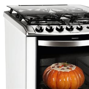 Tem ainda porta do forno removível para uma limpeza mais eficiente, ampla visão do forno, permitindo melhor visibilidade no interior do forno, e grades e nichos individuais, mais facilidade na limpeza, praticidade e segurança. Com proteções de silicone que evitam riscos na mesa inox.