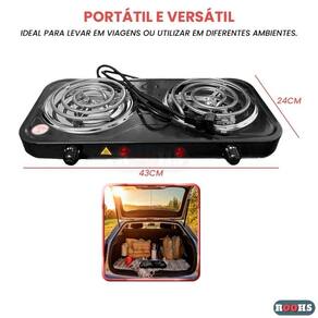 Composição: Metal e plástico Modelo: fogão elétrico portátil Bocas: 2 Potência total: 2000W Voltagem: 220V Cor: Preta