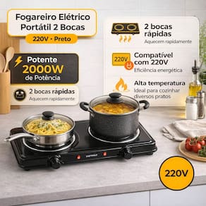 O Fogareiro Elétrico Startools é o parceiro ideal para quem não abre mão de uma comida caseira, seja no acampamento, na casa de veraneio ou no apartamento compacto. Com 2000W de potência total, ele entrega o calor necessário para fritar, cozinhar ou apenas manter seus pratos aquecidos com a mesma eficiência de um fogão convencional.