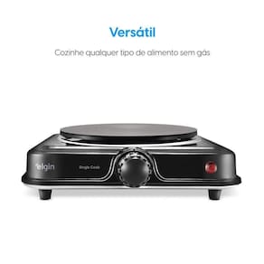ElétricoO Fogão de Mesa Elétrico Elgin 1 Boca 110V é a combinação perfeita de praticidade, segurança e resistência, sendo ideal para qualquer ambiente. Com 1.000W de potência, aquece rapidamente e é compatível com todos os tipos de panela, garantindo versatilidade no preparo das suas refeições.