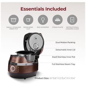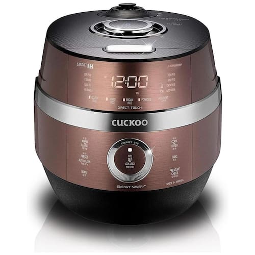 Eficiente e inteligente totalmente programável, completo com display LCD branco 14 funções de cozimento, é o seu assistente pessoal de cozinha. Com navegação por voz para coreano, inglês e chinês. Cozimento mais rápido e inteligente o cozimento sem complicações é simples, com lógica difusa e o algoritmo de cozimento inteligente que detecta o tipo de grão, a temperatura e o tempo de cozimento. O sensor de detecção de pressão anormal garante que sua panela de arroz esteja funcionando em seu nível ideal. Qualidade profissional A tigela interna de aço inoxidável com parede X proporciona temperatura ideal e distribuição de calor por toda a comida. A superfície antiaderente e antirriscos e o botão de liberação da tampa com apenas um toque permitem uma limpeza fácil. Segurança em primeiro lugar Fizemos um esforço extra para garantir que nossa panela elétrica de arroz seja tão segura quanto fácil de usar Com emissão automática de vapor e pressão, travamento da tampa, controle automático de temperatura e alarme de superaquecimento, colocamos a sua segurança em primeiro lugar. Marca de confiança Com 40 anos de experiência, a Cuckoo aperfeiçoou a arte de cozinhar arroz. Junte se à comunidade Cuckoo e desfrute do seu arroz perfeitamente cozido, preparado em nenhum momento em sua máquina de fazer arroz elegante e moderna que complementará qualquer cozinha