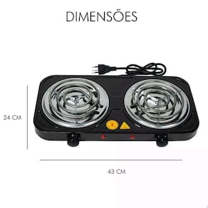 Dimensões L x C x A : 21 cm x 45 cm x 5 cm Quantidade de Bocas: 02 Potência: 2000w Tensão: 220V Frequência: 60Hz Grau de Proteção: IPX0