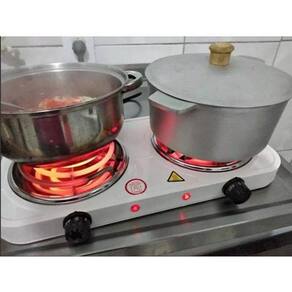 Fogão elétrico portátil de mesa com 2 bocas espirais, 5 níveis de temperatura, compatível com todos