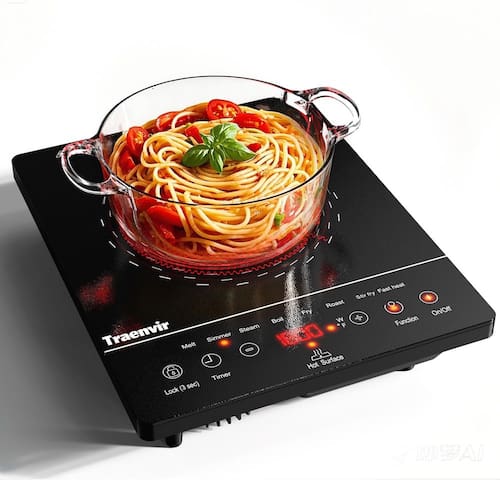 Fogão elétrico Traenvir de um queimador, controle de toque com sensor, plugue de 110-120 V.