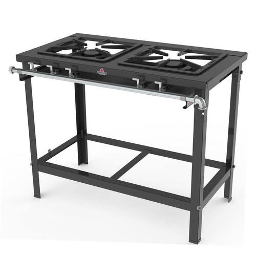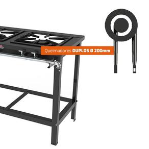 - Produzido com perfil de 9 cm e grelhas removíveis em material fundido de 40 x 40 cm; - Registros industriais em latão cromado com estágios contínuos; - Com bandeja coletora de gordura e sapatas plásticas; - 2 queimadores duplos 200 mm; - Fogão em linha; - A Gás Baixa Pressão;