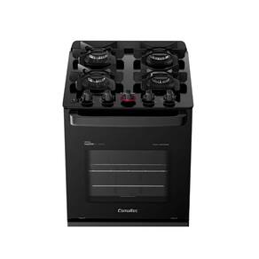 Fogão Esmaltec 4 Bocas Ideal Master Glass Mesa de Vidro Forno 50 Litros Preto T4VFP