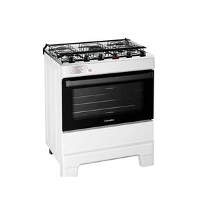 Fogão Esmaltec 5 Bocas Ideal Top Mesa Inox Tampa de Vidro Forno 84 Litros Branco