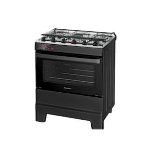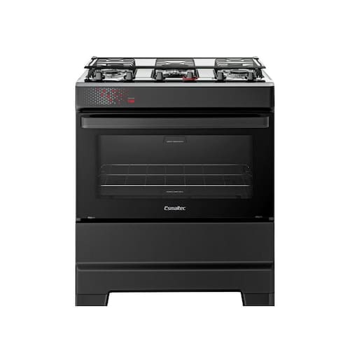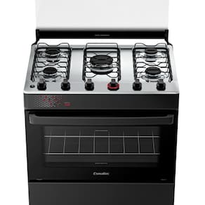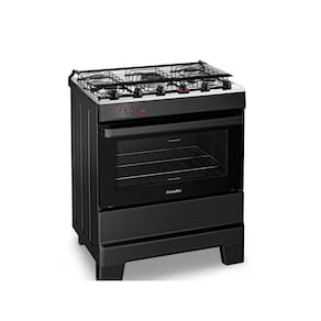 De PisoFogão Esmaltec 5 Bocas Ideal Top Mesa Inox Tampa de Vidro Forno 84 Litros Preto T5IAP