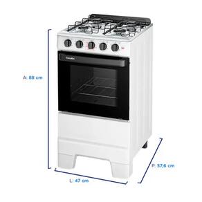 Com quatro queimadores, sendo um queimador família e três pequenos, o fogão oferece a flexibilidade necessária para diferentes tipos de preparo. A potência total de 8,85 kW garante eficiência ao cozinhar.