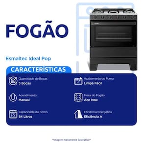 O Fogão Ideal Pop da Esmaltec, chegou para facilitar ainda mais a sua rotina na cozinha! São 5 bocas com acendimento manual, além de te proporcionar trempes com mais segurança e estabilidade para suas panelas. Confira mais detalhes:
