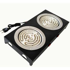 Fogão Fogareiro Elétrico 2 Bocas Camping 110 ou 220 voltsFogão Elétrico Fogareiro 2 Bocas Camping 110 v ou 220 v Não é bivolt, precisa escolher a voltagem .Cores disponíveis: BrancoÉ super seguro e prático. Ideal para preparar refeições. Possui base em aço e resistência isolada por cerâmica refratária. Cabo de alimentação em PP, Possui excelente utilidade na cozinha. Super seguro pois não tem chama - Leve e prático para carregar - Não necessita trocar/utilizar refil.Características: Potencia 500w Cada boca consumo 10 kW/h Amperagem: 9,09 A 2 bocas de 220 volts e 18,18 A 2 bocas para 110 volts Chave de liga e desliga por boca.Tamanho 40x20x6cm. Peso: 1,48 kgRecomendações na utilização:Produto desenvolvido para uso comercial leve, portanto não convém deixá-lo ligado por um período superior a 2 horas. Sugerimos utilizar vasilhas com fundo reto e tampa, para agilizar o tempo de operação e redução de energia. Nunca mergulhe esse aparelho em água ou outro líquido, evitando assim acidentes.