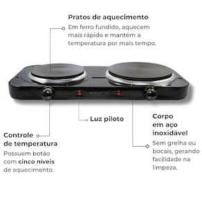 - Dois pratos de aquecimento em ferro fundido