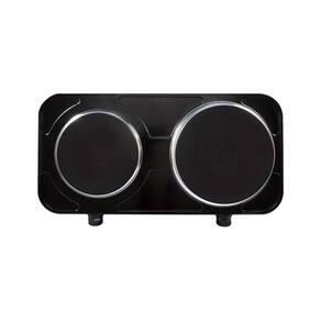 Fogareiro elétrico portátil com 2 bocas, potência total de 2500W (boca média 1000W, boca grande 1500W). Possui controle de temperatura independente por prato, resistência blindada, luz piloto indicadora de funcionamento e botões liga/desliga. Funciona com eletricidade, sem necessidade de gás. Ideal para uso doméstico e camping.Tipo