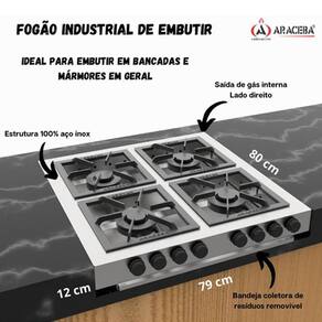 O Fogão Gás Industrial Embutir 4 Bocas Inox Qu Duplo Bp 30X30C foi desenvolvido para atender ambientes profissionais que exigem desempenho, durabilidade e aproveitamento inteligente do espaço. Com estrutura em aço inoxidável 430, oferece alta resistência à corrosão e facilidade na limpeza diária. Equipado com quatro queimadores duplos de ferro fundido, permite preparo ágil e uniforme de grandes volumes de alimentos, ideal para cozinhas comerciais ou industriais. As grelhas de 30x30 cm garantem firmeza no uso de panelas maiores, enquanto a bandeja coletora de resíduos facilita a manutenção da higiene no ambiente de trabalho. Seu perfil baixo de 7 cm permite instalação embutida em bancadas, otimizando o layout da cozinha. Características principais: Modelo: ACFI-3404 Uso: Embutir / Baixa pressão Estrutura: Aço inox 430 Queimadores: 4 duplos em ferro fundido diâmetro 140 mm Grelhas: 30 x 30 cm em ferro fundido Consumo de gás: 0,250 kg/h por queimador Dimensões: 79 cm C x 84 cm L x 12 cm A Acompanha bandeja coletora de resíduos Potente, prático e com acabamento profissional, é a solução ideal para quem busca eficiência e segurança na preparação de alimentos em alto volume. Adquira o seu agora mesmo e eleve o nível da sua cozinha Marca: Não Informado