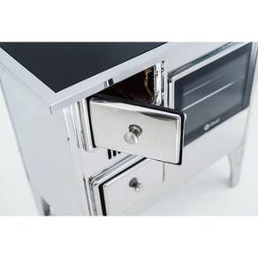 Produto mais alto e mais robusto, melhor ergonomia. Pés e guarnição em aço inox, melhor acabamento e durabilidade. Revestimento interno com tijolos permitindo economia e rendimento com melhor retenção de calor. Porta do forno de vidro com abertura lateral e trava, trazendo segurança e facilidade no uso.