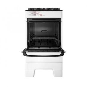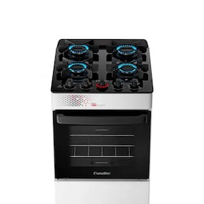 Queimadores: Com trempes duplas em aço esmaltado, ele é altamente durável e resistente ao desgaste do tempo, além de proporcionar maior estabilidade ao acomodar as panelas. A distribuição de potência dos queimadores é otimizada para atender a diferentes necessidades culinárias: dois queimadores para uso familiar, com potência de 2,0 kW cada e dois queimadores pequenos com potência de 1,7 kW.